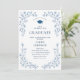 Invitation Ornate Blue Floral Grace 4 Photo Graduation Party
