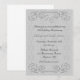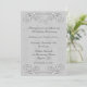 Invitation élégante pour une fête de 25e anniversaire avec une bordure supérieure et inférieure en rouleau ornemental à l'aspect embouti argent. Les invitations sont fournies avec des enveloppes et le choix du papier.