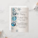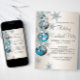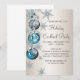 Belles invitations de fête de Noël et de cocktail de vacances avec flocons de neige et ornements bleu turquoise et argent. Ajoutez vos détails à l'avant et/ou à l'arrière en ajoutant simplement vos détails d'événement, style de police, taille et couleur de police, et libellé. Veuillez noter que tous les modèles d'invitation que vous trouverez sur Zazzle sont des graphiques imprimés sans véritables bijoux, rubans, reliefs, gaufrés ou pièces ajoutées.
