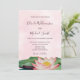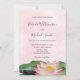 Cette élégante faire-part de mariage fleurie présente une aquarelle représentant une fleur de lotus sur un arrière - plan d'aquarelle rose. À l'envers, il y a un code qr scannable pour votre site mariage.