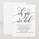 Marquez le début de votre éternité avec élégance en utilisant notre carte d'invitation à la célébration de l'élévation mariage contemporaine à thème noir et blanc, "Oh oui nous l'avons fait". Parfait pour les couples qui souhaitent profiter de leur joyeux événement, cette invitation exhale le raffinement avec un soupçon de jeu, préparant le terrain pour un événement mémorable. Décoré avec un thème design contemporain intemporel, il ajoute une touche de charme raffiné à vos festivités. Conçu par TeeshaDerrick, cette invitation promet de capturer magnifiquement votre histoire d'amour.