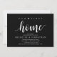 Our first home, new home housewarming party invitation card ("our first home") in white black theme, with cute little heart. Planning a housewarming party in celebrating your new home with your family and friends? Invite your guests with this beautiful and perfect Rustic calligraphy themed housewarming party invitation card.