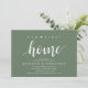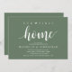 Our first home, new home housewarming party invitation card ("our first home") in sage green theme, with cute little heart. Planning a housewarming party in celebrating your new home with your family and friends? Invite your guests with this beautiful and perfect Rustic calligraphy themed housewarming party invitation card.
