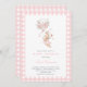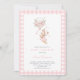 Ours avec Balloon Baby shower Girl minimaliste Invitation, plaid rose vif et ours Baby shower fille, blush en vichy baby shower invitation