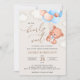 Invitations amis et famille dans le style et donner le ton pour votre journée spéciale avec cette charmante invitation baby shower. Design avec ours bébé avec ballons bleus sur arrière - plan beige.