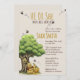 "Célébrez l'arrivée de votre petit trésor avec une invitation pleine de charme intemporel et de conte de fées. Cette invitation de baby shower fantaisiste présente un ours classique adoré assis joyeusement sous un grand chêne avec un pot de miel doux. Des abeilles à miel jouent autour de l'annonce 'Il ou Elle', ce qui en fait le design parfait pour une fête de révélation du sexe magique.