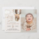 Invitations amis et famille dans le style et donner le ton pour votre journée spéciale avec cette charmante invitation d'anniversaire. Le design présente un ours en peluche en montgolfière marron sur un arrière - plan beige.
