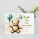 Invitation Ours en peluche bleu ballon anniversaire merci