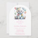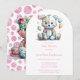 Cette illustration contient un ours en peluche mignon et fantaisiste avec un patchwork floral brodé à l'aquarelle, avec un ballon patchwork sur un fond blanc simple. Des invitations et des fournitures pour fête assorties sont disponibles dans cette suite de collection.