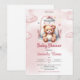 Invitation Ours en peluche mignon couleur rose d'aquarelle en