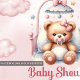 Magnifique design pour les invitations à la douche pour bébé fille caractéristiques mignon Aquarelle rose ours en peluche en berceau avec pacifier. Typographie moderne de script kidish. N'hésitez pas à me contacter pour les articles correspondants ou la personnalisation. Impressions violettes ©