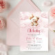 Invitation Ours en peluche rose d'aquarelle mignon sur le nua