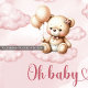 Conception de Whimsical pour les filles Bébé Douche invitations caractéristiques de l'aquarelle mignon ours en peluche rose sur le nuage avec ballons d'ivoire. La police de calligraphie moderne et ludique avec le coeur dit "Oh bébé". N'hésitez pas à me contacter pour les articles correspondants ou la personnalisation. Impressions violettes ©
