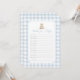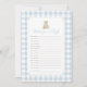 Invitez vos amis et votre famille à formuler leurs vœux pour bébé avec cette carte de jeu de baby shower élégante représentant un ours en vichy bleu.