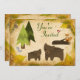 Cette adorable invitation à l'anniversaire des animaux de la forêt comprend une maman et un bébé ours, un charmant renard, un mignon écureuil, un petit oiseau rouge et des pins. *