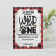Invitation Ours Rustique Plaid Forêt Paw Garçons 1er annivers