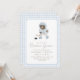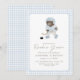 Cette douce invitation d'anniversaire de première année de hockey à carreaux bleus comporte un ours en peluche joueur de hockey aquarelle, ce qui la rend parfaite pour la célébration du premier anniversaire d'un petit garçon. Le motif à carreaux classique et le thème sportif créent une invitation de fête d'anniversaire de première année de hockey charmante et élégante.