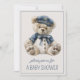 Cette invitation de baby shower pour bébé garçon présente un adorable ourson vêtu d'une veste bleue marine et d'une casquette assortie. Personnalisez le recto et le verso avec le texte spécial de votre choix.