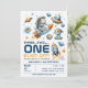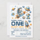 With its orange and blue tones, this gender-neutral invitation is perfect for any baby boy or girl who loves adventure. The playful “3…2…1… Blast Off!” headline adds excitement to your space-themed first birthday party, making it truly unforgettable.