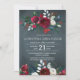 Elégante aquarelle d'hiver Noël entreprise à la maison ouverte modèle avec bouquets de roses bordeaux et blancs avec branches de sapin vert saisonnier, baies rouges et feuillage sur un arrière - plan bleu marine de minuit sombre. ++++++++++++ Personnalisez-le avec vos détails ! ++++++++++++++++++++L'invitation est adaptée pour les vacances d'hiver / Noël élégante et rustique fêtes florales de campagne / business entreprise événements saisonniers.
