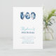Un modèle moderne, élégant et classe de 30ème anniversaire d'invitation pour les femmes avec un thème nautique, avec trois huîtres en timbres d'encre et typographie bleue et blanche, ainsi que la calligraphie moderne. Un design parfait pour une femme de trente ans, célébrant son 30e anniversaire avec une fête d'huîtres, ou une fête de plage, bord de mer, océan, bateau ou yacht.