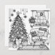 Carte de coloriage à thème Noël. Salon festif avec un sapin de Noël et autres décorations carte de coloriage pour enfants, ados ou adultes.