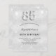 Une invitation moderne, élégante et glamour pour une fête d'anniversaire de 85 ans. Un fond argenté factice, orné de poussière de paillettes. Personnalisez et ajoutez votre nom et les détails de la fête. Le numéro 85 est écrit avec une police de caractères de style ballon, script.