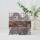 Une élégante invitation en feuille de cuivre et d'argent présentant une lune rouge avec un charme de perle rubis or, des colliers de cœurs rubis or et des étoiles cuivrées brillantes.
