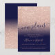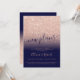 Annoncez le report de votre mariage, anniversaire, fête ou tout événement et nouveaux plans avec ce design moderne, original et simple avec un dégradé de paillettes or rose sur fond de couleur bleu marine entièrement personnalisable. Parfait pour un mariage chic et élégant, avec une calligraphie élégante et raffinée.