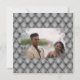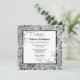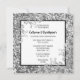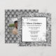 Un beau motif à paillettes argentées fausses bordé de noir et de volutes florales délicates comporte des modèles de texte pour votre formulation personnalisée au milieu sur un fond blanc. Le dos de l'invitation présente un motif faussement argenté gris en quatre-feuilles sur lequel apparaît un modèle de photo pour le couple marié ou fiancé. Des volutes délicates de fausses argentures d'angle apparaissent dans chaque coin. C'est idéal pour les mariages d'été, de printemps, d'hiver et d'automne, les anniversaires et les fiançailles. N'hésitez pas à supprimer ou à déplacer les modèles et à modifier la taille et le style des polices si vous le souhaitez.