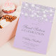 Une invitation moderne, jolie et élégante à une fête d'anniversaire pour les 16 ans avec des confettis à paillettes argentées et des guirlandes lumineuses blanches avec un bloc de couleur lavande pastel.
