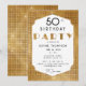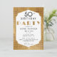 Un modèle d'invitation à une fête d'anniversaire simple, moderne, élégant et chic avec un fond à paillettes dorées, le mot PARTY recouvert de paillettes dorées (simulées, pas de vraies paillettes) et en typographie moderne, ainsi qu'un cadre "paillettes" élégant. Un design chic Art déco pour l'anniversaire d'une femme de tout âge, pour ses 21, 30, 35, 40, 50, 55, 60, 65, 70, 80 ou 90 ans !