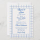Si vous cherchez une invitation pour bébé garçon unique et facile personnalisable, cette invitation est parfaite pour vous. Comme vous le voyez, il dispose d'une écriture rétro manuscrite d'un petit pain est dans le four en bleu. Et un ange cupide dessiné à la main portant une illustration de pain. Et main bleue dessinée à damiers carrés. Tout bleu sur arrière - plan crème. Très facile à customiser et à utiliser. Alors attrapez-le et faites en sorte que vos invitations soient très engagés.