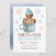 L'invitation pour l'anniversaire du garçon Watercolor comporte un adorable biscuit en pain d'épices dans un casquette tricot bleu, profitant d'un bain chaud dans une tasse de cacao et de marshmallows avec des flocons de neige en chute dans les couleurs pastel. Parfait pour les fêtes anniversaires de enfants d'automne et d'hiver. Art par KL Stock.