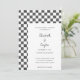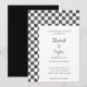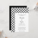 My black and white painted checkerboard squares form the border of this custom wedding invitation. The watercolor black and white pattern is on the top and left hand side of the invitation with a white rectangle in the lower right corner ready to be personalized with all of your wedding details. The reverse side has a coordinating pink background.