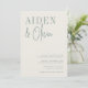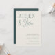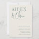 Une belle typographie moderne basée sur la faire-part de mariage dans la sauge poussiéreuse vert, blanc chaud et vert forêt. Vos noms apparaissent en haut à gauche dans une paire alléchante de scripts manuscrits et de polices serif classiques. Entrez vos noms, puis utilisez l'outil de conception pour ajuster la taille et le positionnement si nécessaire. Personnalisez avec vos détails de mariage dans les lettres serif classiques alignées en bas à droite.
