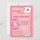 Organisez une fête d'anniversaire en sommeil pour votre fille d'anniversaire afin qu'elle puisse invitation ses amis les plus proches pour une nuit de plaisir et de rire! Il dispose de l'essentiel de couchage mignon comme un coussin de coeur confortable, pyjama rose avec un joyeux lapin et des pantoufles kawaii lapin! Couleurs roses douces. Personnalisez facilement avec les détails de votre fête.
