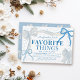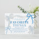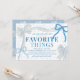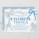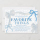 Célébrez la saison en beauté avec cette invitation de Noël à la fête de Noël, inspirée de la coquette, avec des arcs dessinés à la main, des couleurs douces, et un design romantique, rempli de rubans. L'avant comporte quatre arcs dessinés à la main : deux rubans crème audacieux avec bandes bleu bébé, plus deux accents plus petits en bleu ciel classique et bleu clair. Le dos offre un arrière - plan bleu glacé rafraîchissant avec un délicat motif avant.