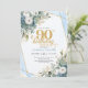 Invitation Pale blue gold leaves soft chic 90th birthday