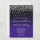 Design foncé personnalisable pour invitation les filles à sa fête de 30e anniversaire ou événement spécial. Faux parties scintillant argentée pâle shimmer confetti contre le dégradé noir et indigo (changer la couleur violet arrière - plan pour customiser). L'invitation à l'anniversaire de naissance de la fille est un style de police calligraphie moderne et élégant. Vous pouvez customiser la face de police.