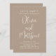 Faire-part de mariage de script de typographie et détails avec QR Code à l'arrière dans les tons taupe pastel, couleurs beiges pâles et poussiéreuses. Veuillez me contacter si vous avez besoin d'autres articles.