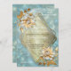 Une palette bleu clair se trouve devant un motif arrière - plan en cuivre/bronze de style barogue. Les cartes sont décorées de fleurs crème et de feuilles dorés sur un cadre en forme de losange.