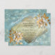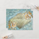 Une palette bleu clair se trouve devant un motif arrière - plan en cuivre/bronze de style barogue. Les cartes sont décorées de fleurs crème et de feuilles dorés sur un cadre en forme de losange.