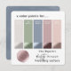 Une autre année est arrivée et il est de nouveau temps pour les nouvelles tendances de couleur et palettes mariages pour 2022. Les 2022 combos couleur Mariage sont prêts ! Une collection de 10 palettes couleur mariages créées avec la coordination des collections de papeterie faire-part de mariage par Chic Paperie. Voici la palette de couleurs Mariage de Chic Paperie dans la coloration Mauve et Bleue Dusty de : Gardenia Off-White, Vert feuille clair, Mist bleu, Rose Dusty Mauve, et Rose Poudre. Une belle combinaison de couleurs pour un jardin de printemps ou d'été ou un mariage extérieur! Montré avec des nuances de couleurs plates et métalliques. Les nuances de couleurs ont les codes de couleurs hexadécimales pratiques. Obtenez vos cartes d'échange de palette de couleurs pour vous aider à planifier et à coordonner vos détails de mariage, décorations et papeterie. Donnez-les à la fête de mariage, aux demoiselles d'honneur ou au wedding planner ! Ensuite, regardez mes collections pour voir les suites décoratives de faire-part de mariage et de fêtes créées dans la palette de couleurs montrées! Ou simplement chercher : Chic Paperie's 2022 Collections Mariages (sur google ou zazzle) pour les voir tous! Bonne planification !