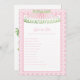 This Palm Beach preppy styled bridal shower game has cabana umbrella on top with a pink and white cane webbing pattern. You can edit the game categories to fit the needs of your event.