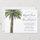Faire-part de mariage d'inspiration plage avec une aquarelle représentant un seul palmier poussiéreux. Sur le côté de celui-ci sont vos détails uniques de jour de mariage. Au verso, une couleur marron sablonneux vient compléter l'avant.