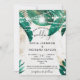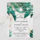 Vous planifiez un mariage à la destination de plage de l'île tropicale? Invitation vos invités avec cette belle Invitation avec bocal léger scintillant lumière de fée illustration et palmier feuilles tropicaux sur le marbre or arrière - plan