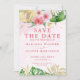 Palm feuille rose et pêche avec l'aquarelle or mariage floral enregistrer le faire-part de la carte de date, avec un arrière - plan texturé de lavage rose très clair. Nom, date et information de la Personnaliser.