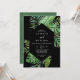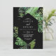 Ce faire-part de mariage décontracté sauvage de palmier noir hexagone est parfait pour une plage ou un mariage de destination. Le design présente un éventail exotique de feuilles de bananiers verts aquarelles, fougères, feuillage, plantes botaniques et verdure sur un arrière - plan noir pour une sensation estivale tropicale audacieuse.
