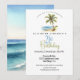 Célébrez un événement important dans un style côtier décontracté avec cette élégante invitation tropicale pour un anniversaire de 21 ans. Avec un beau palmier à l'aquarelle surplombant une plage sereine, ce design crée l'atmosphère parfaite pour une célébration élégante au bord de la mer, une fête tropicale, une réunion d'anniversaire sur la plage ou un événement d'anniversaire de destination.